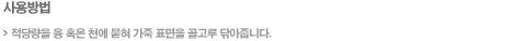 사용방법 1.적당량을 융 혹은 천에 묻혀 가죽 표면을 골고루 닦아줍니다.